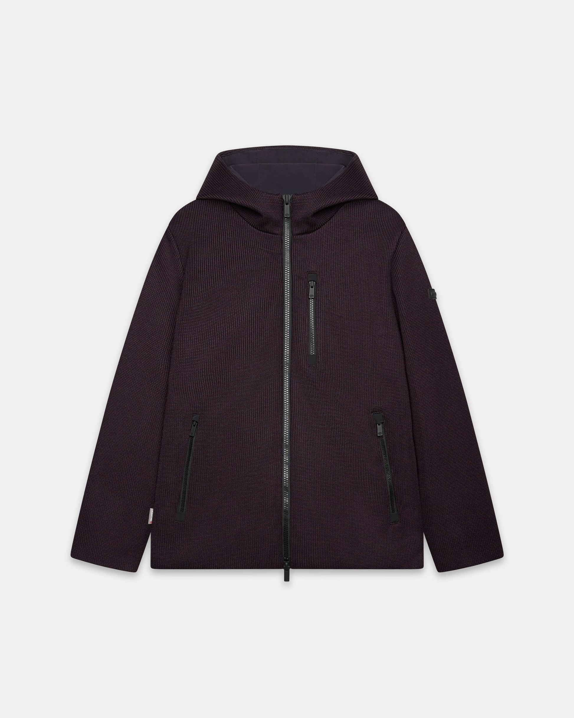Casaco BURBER de malha técnica com elasticidade que garante conforto e liberdade de movimento. Tem fecho frontal com cursor duplo, punhos interiores á prova do vento e capuz ajustável.